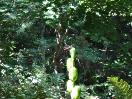 外を眺めるととんぼがひとつの植物にずうっと止まっている