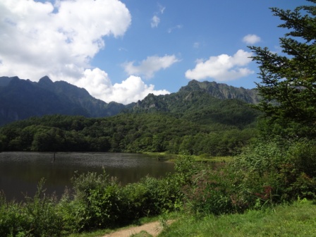 お腹いっぱいになり、つづいてはお店からほど近くの鏡池へ。
