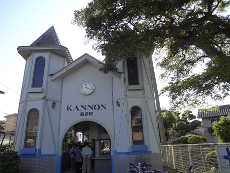 線路と家を潜り抜けて観音駅に到着。