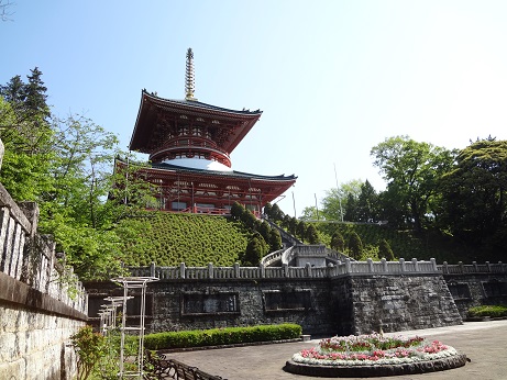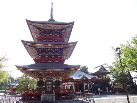 本堂のそばに建っていた三重塔も太陽に照らされて