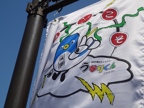 成田のマスコットうなりくんの旗を発見。