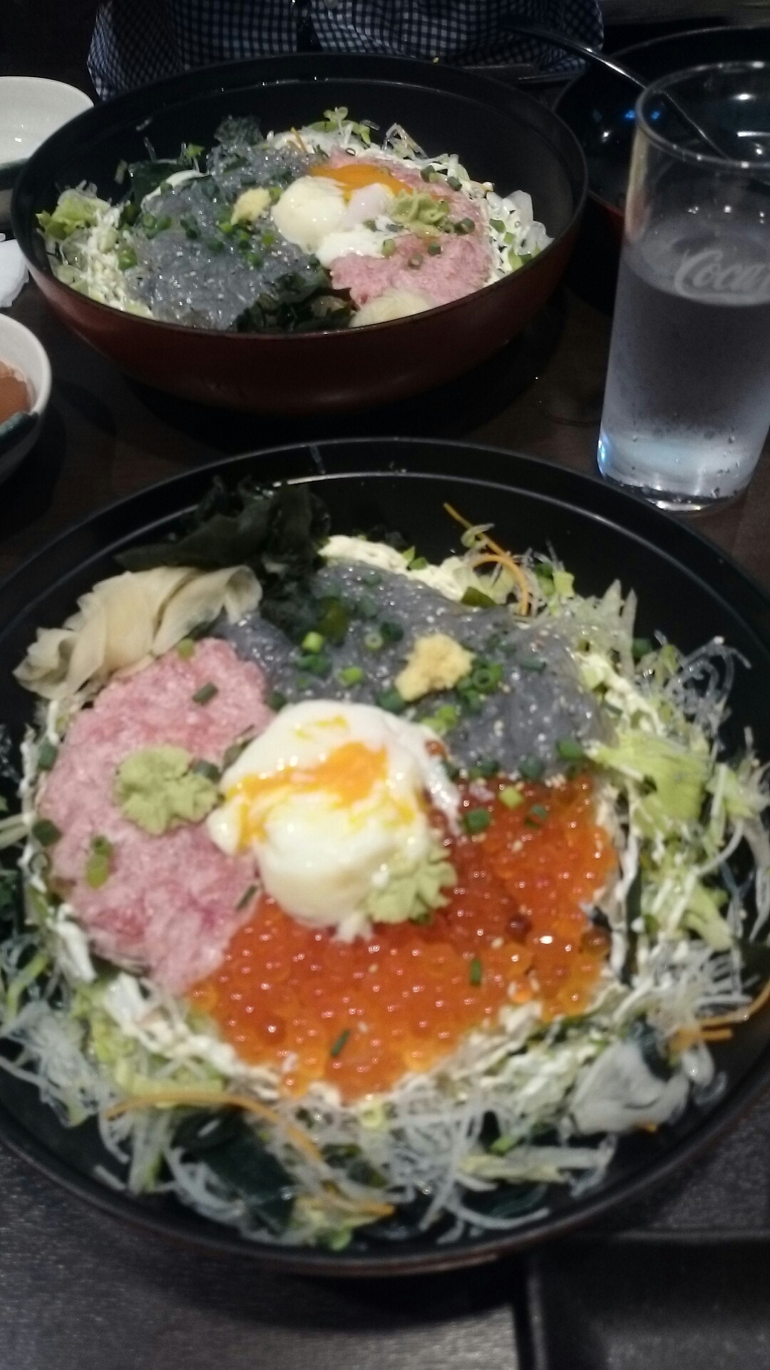 私は生しらす三色丼、
